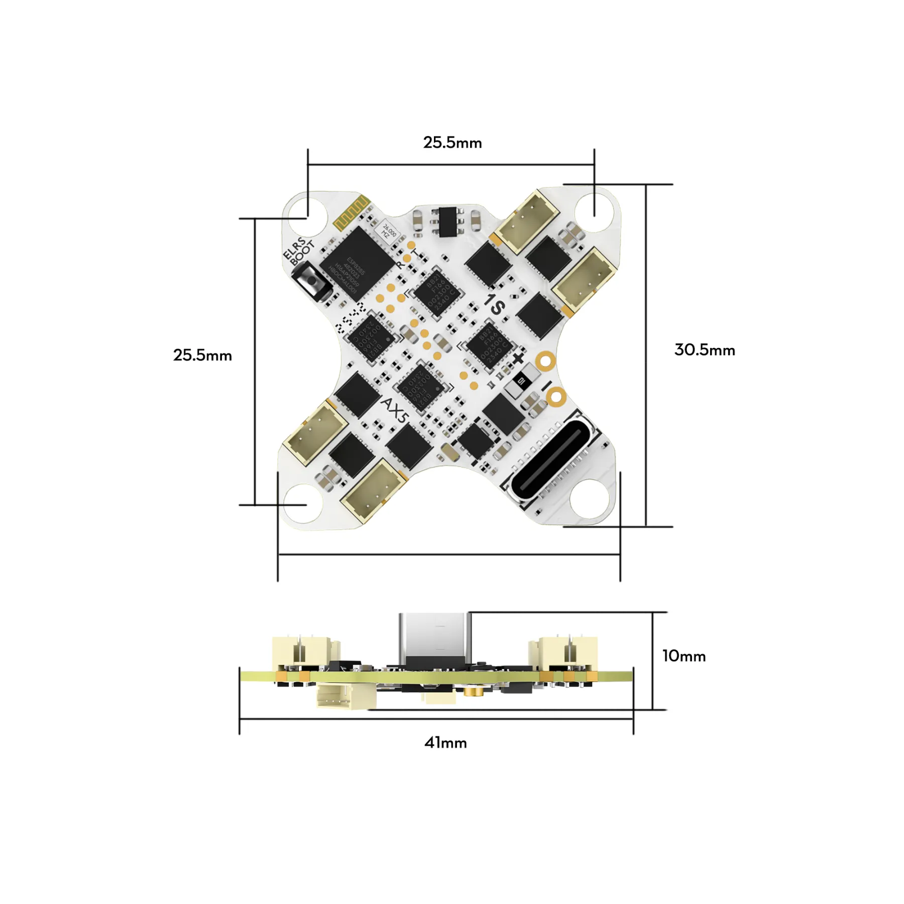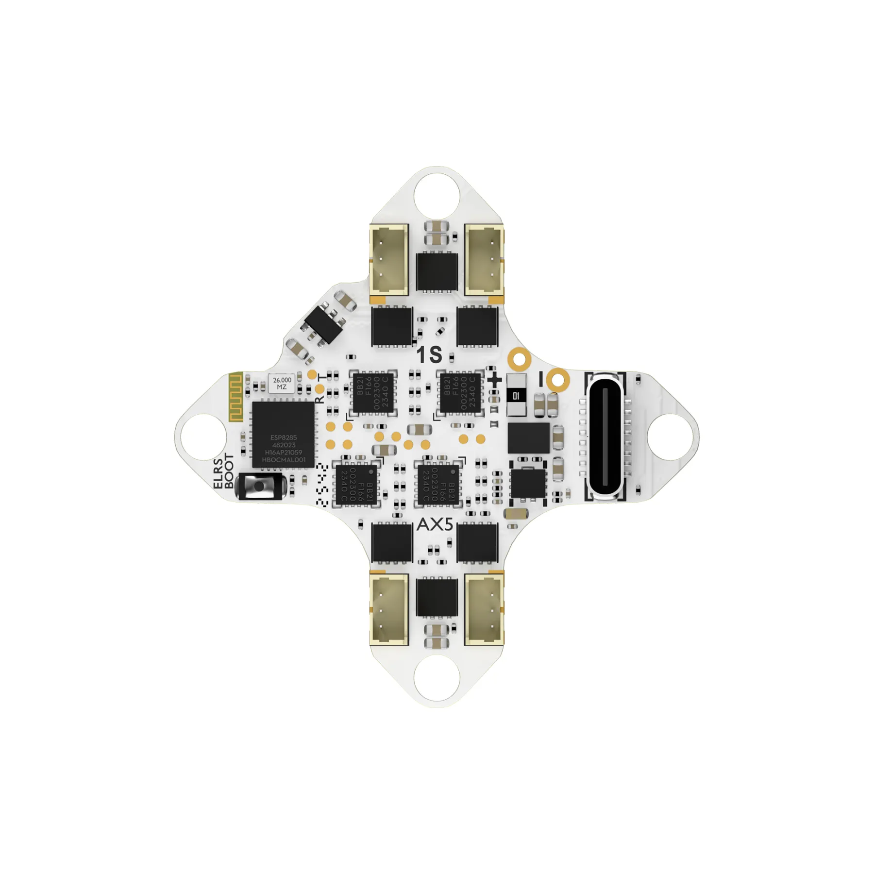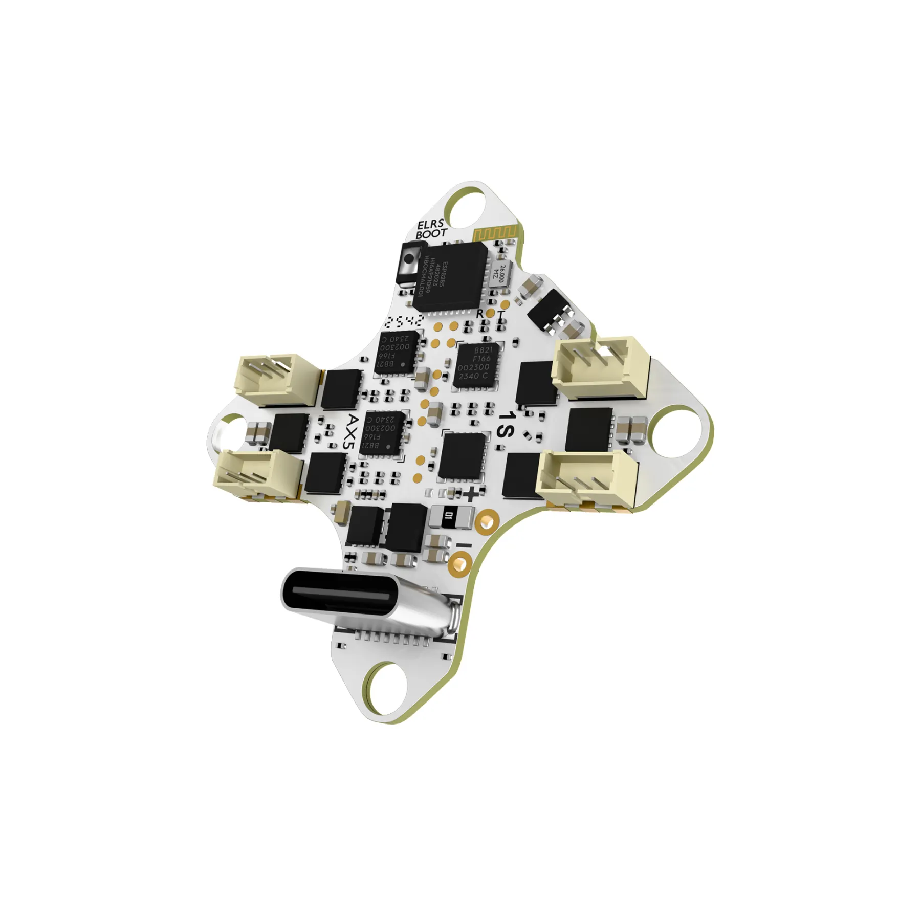 • Serial ELRS: Integrated serial ELRS 2.4GHz receiver (built-in TCXO crystal oscillator)